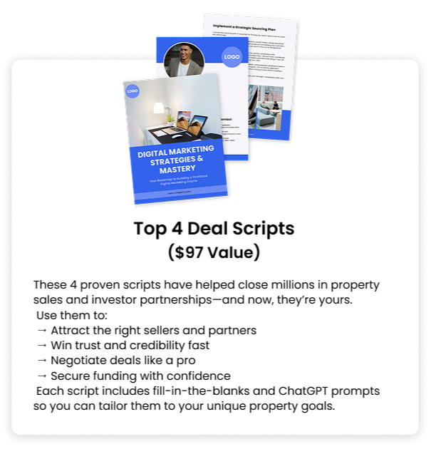 These 4 proven scripts have helped close millions in property sales and investor partnerships—and now, they’re yours.